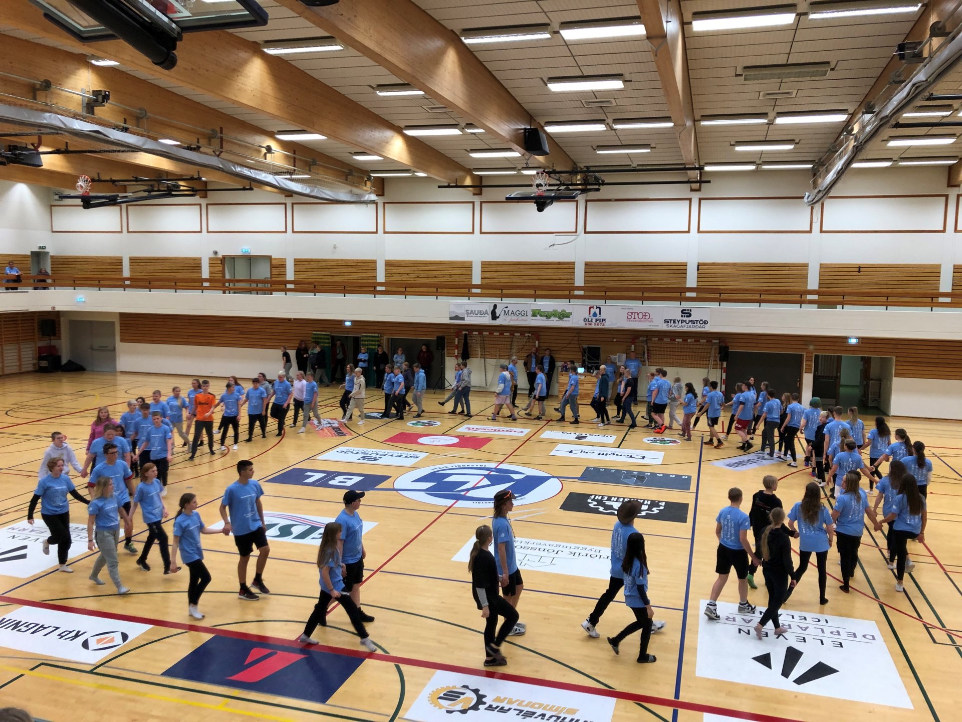 Dansinn hófst í Íþróttahúsinu á Sauðárkróki og var dansað þar frá kl. 10-14 í dag og svo færðist dansinn yfir í matsal Árskóla, þar sem dansað verður þangað til í fyrramálið. Dansmaraþoninu lýkur svo í íþróttahúsinu kl. 10.