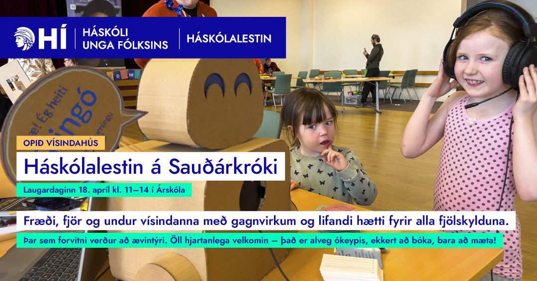 Á laugardeginum 18. apríl, frá kl. 11:00 - 14:00 verður haldið opið vísindahús þar sem íbúum í Skagafirði er boðið að koma og upplifa vísindi á lifandi og aðgengilegan hátt. Þar gefst einstakt tækifæri fyrir fjölskyldur og áhugasama að kynnast starfi háskólasamfélagsins.