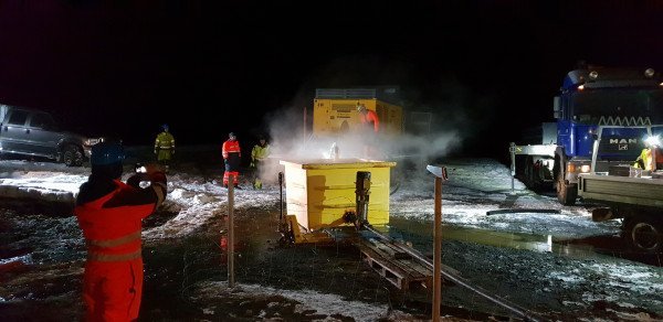 Var brugðið á það ráð að blása lofti eftir stálrörum í nýju holuna þannig að vatn þrýstis upp í topp holunnar. Vatnið var síðan leitt í stórt kar þaðan sem því var dælt í loftskiljutank og síðan inn á dreifikerfi hitaveitunnar. Nýrri dælu verður komið fyrir í eldri holunni á næstu dögum og á vef Skagafjarðarveitna segir að búast megi við einhverjum truflunum á meðan en notendur verði upplýstir um gang mála. Nánar má lesa um framkvæmdir á vef Skagafjarðarveitna.