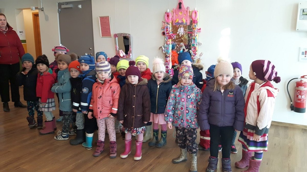 Leikskólabörn heimsækja sýninguna Endurspeglun í Safnahúsi Skagfirðinga