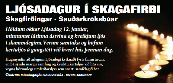 Laugardaginn 12. janúar er haldinn Ljósadagur í Skagafirði, en íbúar eru hvattir til þess að kveikja kertaljós við gangstétt og minnast þannig látinna ástvina.