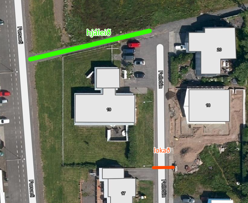 Innsti hluti Fellstúns á Sauðárkróki verður lokaður fyrir umferð í dag og á morgun (15. - 16. nóvember) vegna viðhalds. Hjáleið verðum um göngustíg frá forsæti.