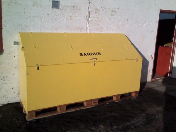Í vikunni var komið fyrir sandkistum á þéttbýlisstöðum í Skagafirði. Í kistunum er saltblandaður sandur og er fólki frjálst að ná sér í sand í kisturnar til að sanda í kringum hús sín.