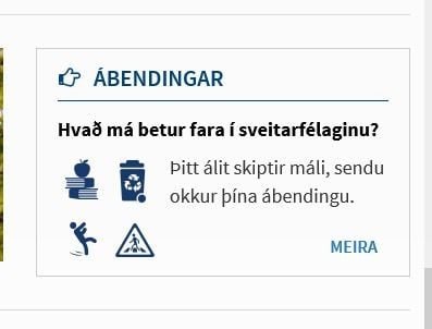 Í ábendingargáttinni geta íbúar komið með athugasemdir sem þeir vilja koma á framfæri um hvað megi betur fara í sveitarfélaginu. Við hvetjum íbúa til að nýta sér þennan nýja möguleika því álit allra skiptir máli í samfélaginu.