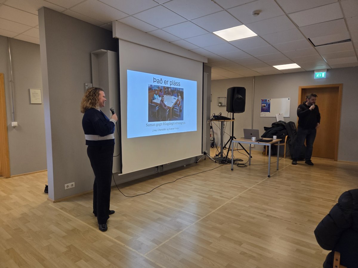 Fyrirlestur um félagslega einangrun var haldinn 30. janúar sl. í Húsi frítímans á Sauðárkróki í boði fjölskyldusviðs Skagafjarðar í samvinnu við Félag eldri borgara í Skagafirði. Líney Úlfarsdóttir sálfræðingur og Svavar Knútur Kristinsson tónlistarmaður fræddu þátttakendur um félagslega einangrun, einkenni hennar, áhættuþætti, skaðsemi auk mögulegra forvarna og verkefni sem hægt er að fara í til að vinna gegn henni.