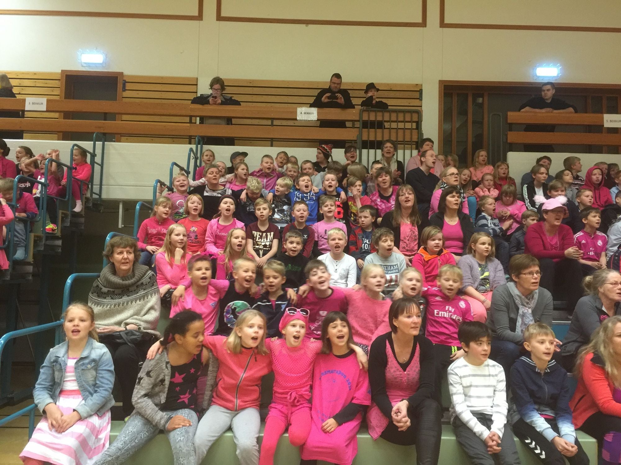 Mikil stemming var í íþróttahúsinu á Sauðárkróki í gær þegar um 700 grunnskólabörn ásamt elstu börnum leikskólanna komu saman í þeim tilgangi að skemmta sér saman og sýna hvert öðru vináttu.
